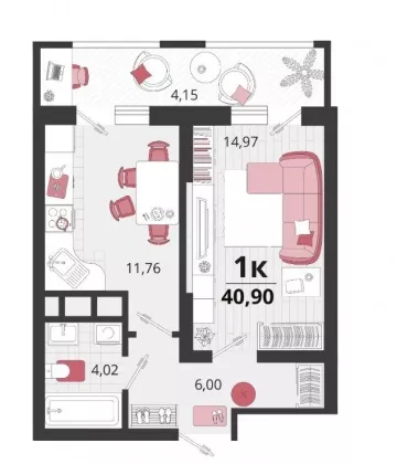 Продается однокомнатная новостройка, 40.9 кв.м., 11/18 эт