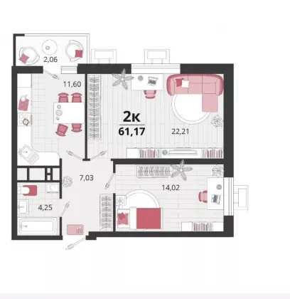 В избранное Двухкомнатная квартира