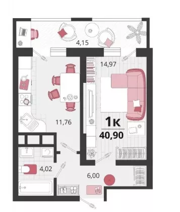 Продается однокомнатная новостройка, 40.9 кв.м., 4/18 эт