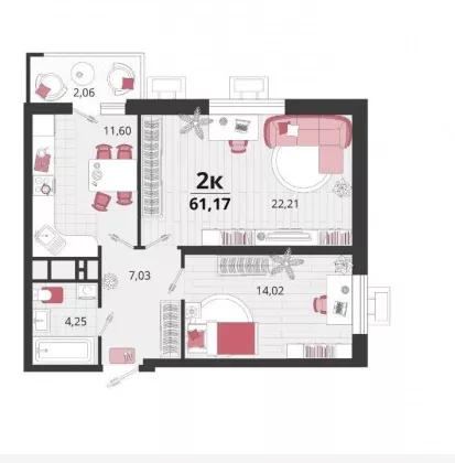 Продается 2-х комн. новостройка, 61.1 кв.м., 11/24 эт