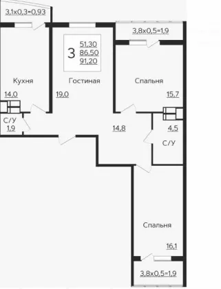 Продается 2-х комн. новостройка, 70.3 кв.м., 9/12 эт