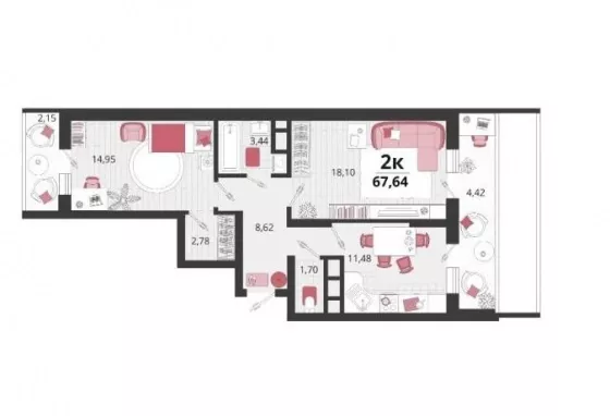 Продается 2-х комн. новостройка, 67.6 кв.м., 16/24 эт