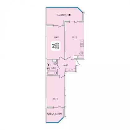 Продается 2-х комн. новостройка, 69.2 кв.м., 9/19 эт