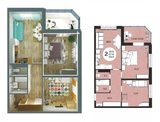 Продается 2-х комн. новостройка, 66 кв.м., 10/24 эт