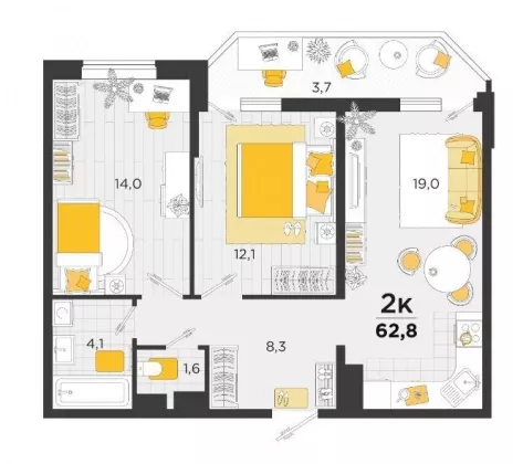 Продается 2-х комн. новостройка, 62.8 кв.м., 12/23 эт