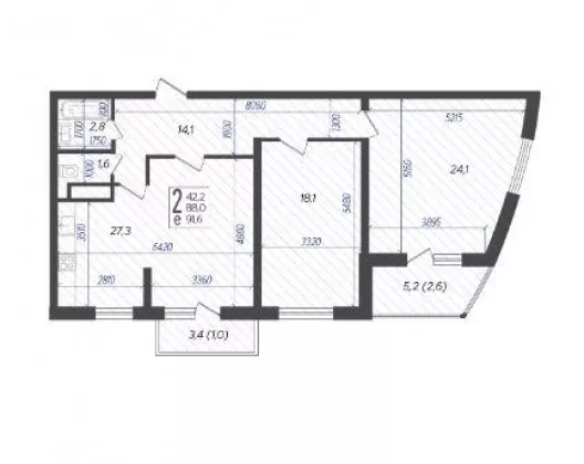 Продается 2-х комн. новостройка, 91.6 кв.м., 12/24 эт