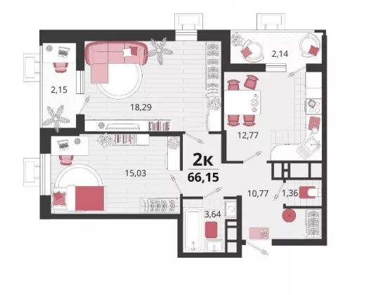 Продается 2-х комн. новостройка, 66.1 кв.м., 4/24 эт