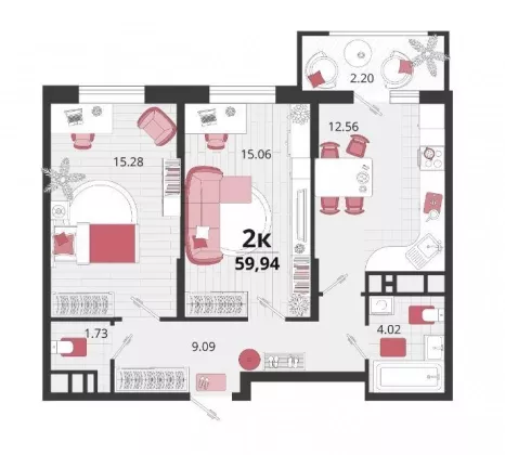 Продается 2-х комн. новостройка, 59.9 кв.м., 12/18 эт