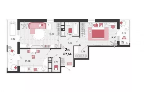 Продается 2-х комн. новостройка, 67.6 кв.м., 8/24 эт
