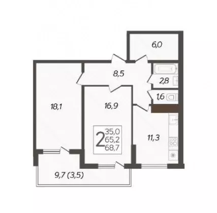 Продается 2-х комн. новостройка, 68.7 кв.м., 12/24 эт
