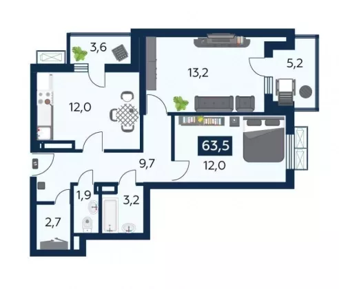 | Площадь, кв.м. | 63.5 |