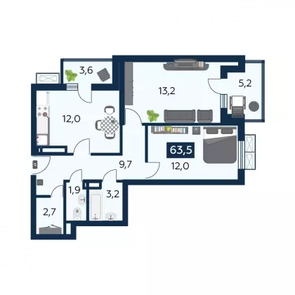 Продается 2-х комн. новостройка, 63.5 кв.м., 19/24 эт