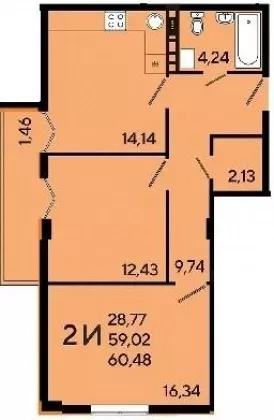 Продается 2-х комн. новостройка, 60.48 кв.м., 5/8 эт