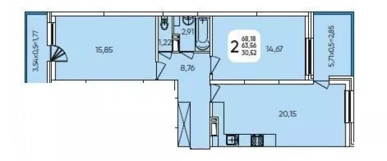 Продается 2-х комн. новостройка, 68 кв.м., 2/17 эт