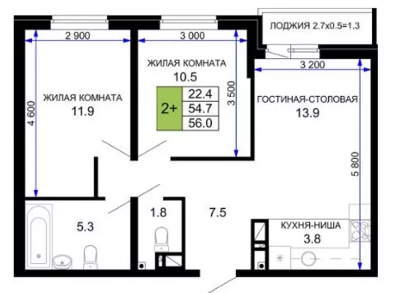 Продается 2-х комн. новостройка, 56 кв.м., 10/19 эт