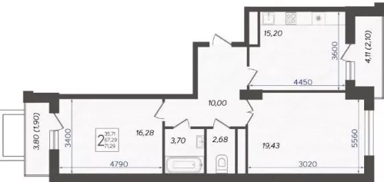 Продается 2-х комн. новостройка, 71 кв.м., 4/16 эт
