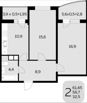 Продается 2-х комн. новостройка, 61.45 кв.м., 9/18 эт