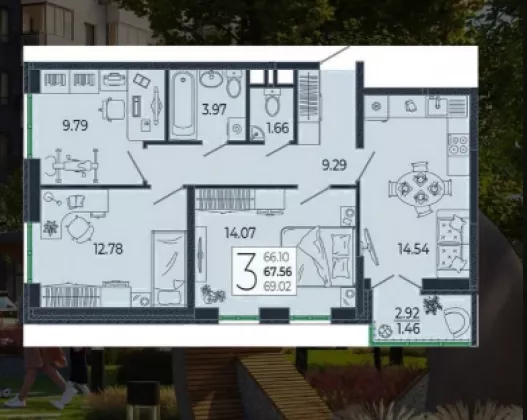Продается 3-х комн. новостройка, 69.02 кв.м., 10/21 эт