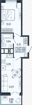 Продается однокомнатная новостройка, 43.51 кв.м., 18/21 эт
