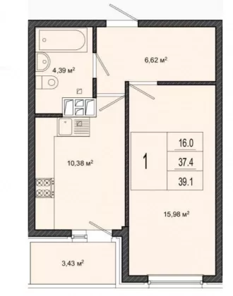 Продается однокомнатная новостройка, 39.1 кв.м., 9/22 эт
