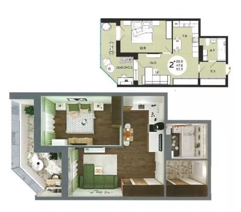 Продается 2-х комн. новостройка, 53.3 кв.м., 12/24 эт