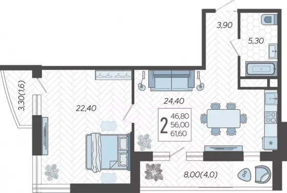 | Площадь, кв.м. | 61.6 |