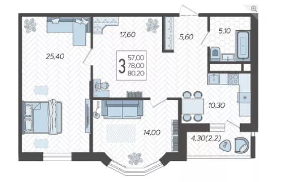 Продается 3-х комн. новостройка, 80.2 кв.м., 8/16 эт