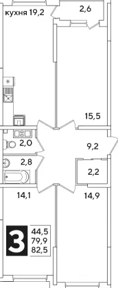 Продается 3-х комн. новостройка, 82.5 кв.м., 12/16 эт