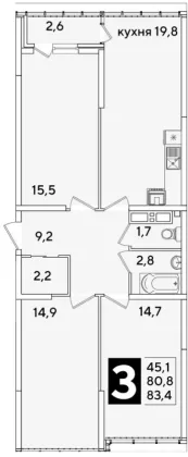 Продается 3-х комн. новостройка, 83.4 кв.м., 15/16 эт