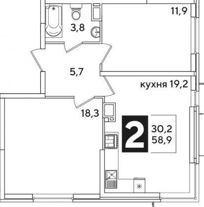 Продается 2-х комн. новостройка, 58.9 кв.м., 5/16 эт