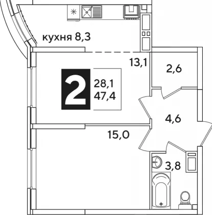 Продается 2-х комн. новостройка, 47.4 кв.м., 12/16 эт