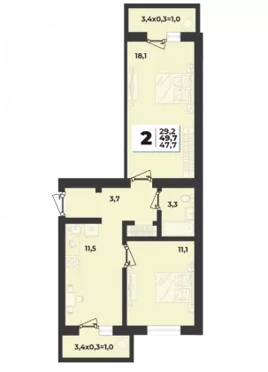 Продается 2-х комн. новостройка, 49.7 кв.м., 5/5 эт