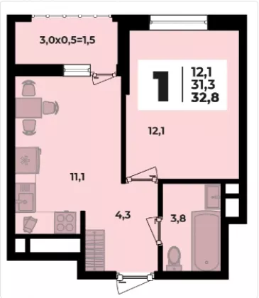 Продается однокомнатная новостройка, 32.8 кв.м., 5/8 эт