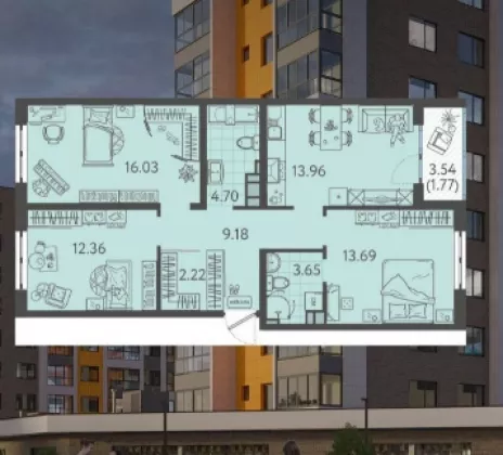 Продается 3-х комн. новостройка, 77.1 кв.м., 6/8 эт