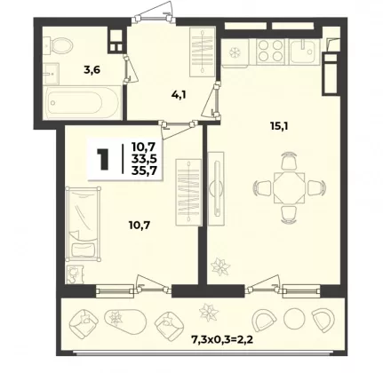 Продается однокомнатная новостройка, 35.7 кв.м., 3/8 эт
