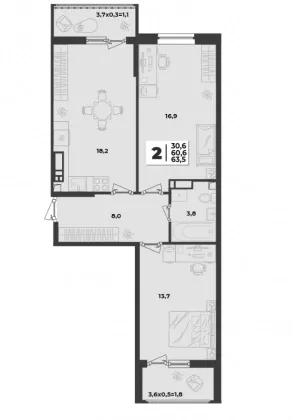 Продается 2-х комн. новостройка, 63.5 кв.м., 4/8 эт