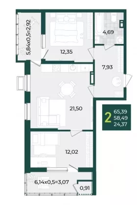 | Площадь, кв.м. | 65.39 |
