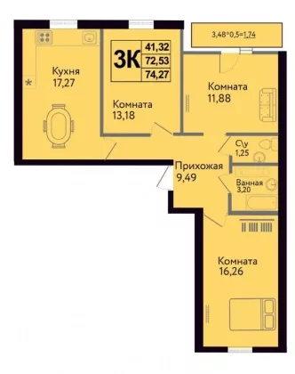 Продается 2-х комн. новостройка, 52.4 кв.м., 11/17 эт