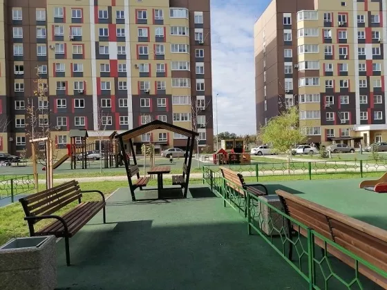 Большое расстояние между домами, малоэтажная застройка, много места для парковки автомобилей. Двор с красочными детскими и спортивными площадками, скамейками для отдыха, зелеными кустарниками и деревьями, чистота и порядок. Детский сад, школа, поликлиника в шаговой доступности.