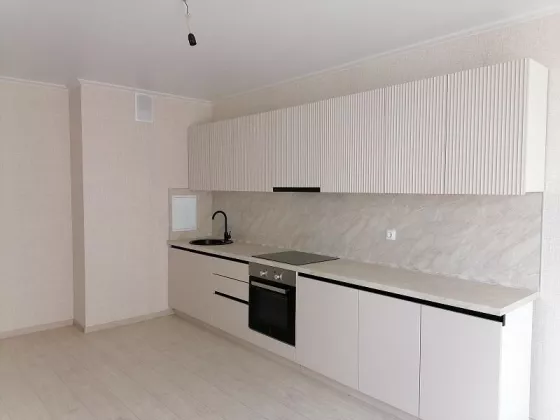 На кухне установлен кухонный гарнитур со всей необходимой техникой: варочная поверхность, духовой шкаф, вытяжка всё новое и добротное. Хороший смеситель и стильная раковина, на мебели дорогая фурнитура. Сан/узел - с сантехникой, балкон и лоджия остеклены, два лифта, видеонаблюдение.