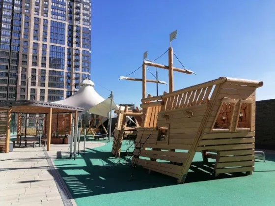 Есть стилобат с детскими и спортивными площадками, обустроен большой спортивный корт для игры в баскетбол, детские площадки оборудованы качелями, песочницами, под ним парковочные места. Паркинг не углублен под землю, а это значит что помещение всегда будет сухим, а ваш автомобиль будет защищен от непогоды.