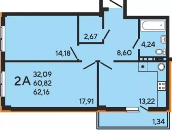 Продается 2-х комн. новостройка, 62.16 кв.м., 4/8 эт