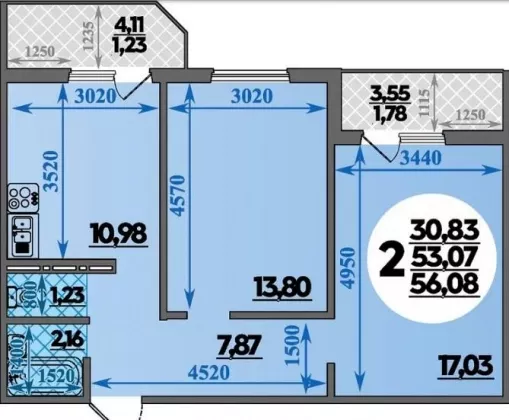Продается 2-х комн. новостройка, 56.08 кв.м., 13/16 эт