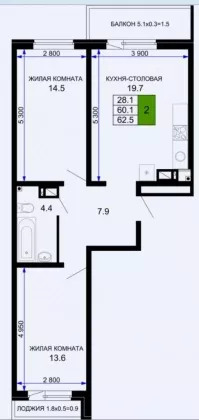 Продается 2-х комн. новостройка, 62.5 кв.м., 7/19 эт