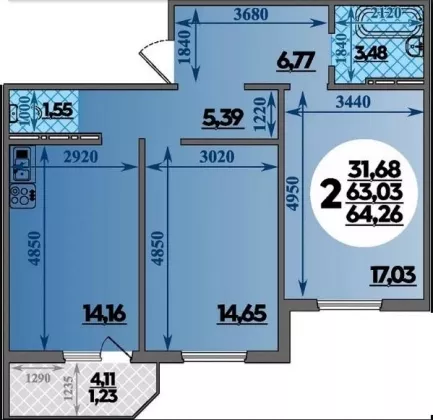 Продается 2-х комн. новостройка, 64.26 кв.м., 6/16 эт