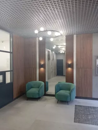 В доме три лифта, светлые холлы, дизайнерский ремонт, колясочные и боксы для велосипедов, удобная навигация, консьерж-сервис, круглосуточное видеонаблюдение.