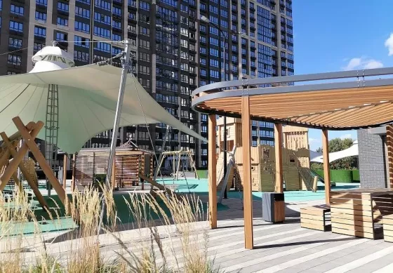 В доме система умный дом, три лифта!!! На первом этаже помещение для хранения самокатов, велосипедов и колясок. Отведено специальное место для мытья лапок животным. На территории строительство детского сада , на данный момент несколько садиков в шаговой доступности.