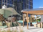Во дворе-стилобат: 1 уровень - крытый наземный паркинг, а 2 уровень - зоны отдыха и развлечений.