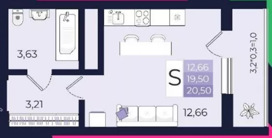 Продается Студия новостройка, 20.5 кв.м., 12/25 эт
