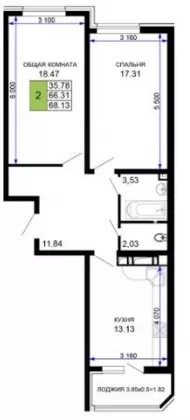 Продается 2-х комн. новостройка, 68.13 кв.м., 15/19 эт